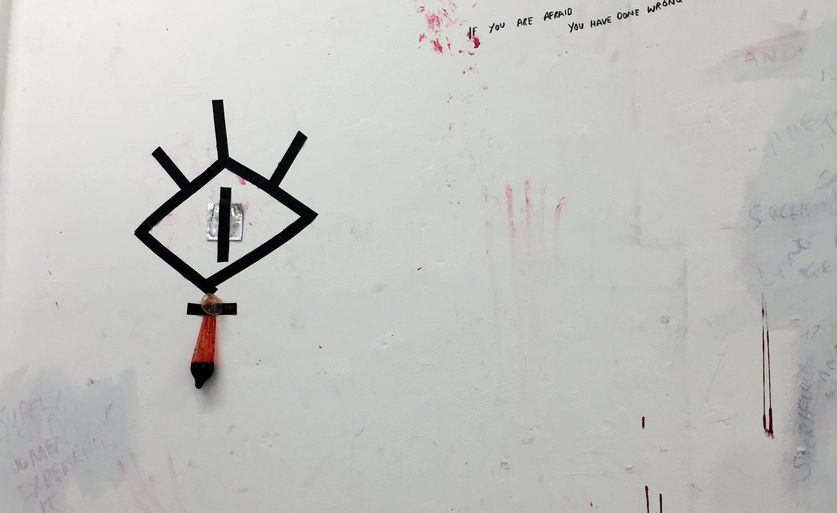 Cardboard, acrylic, condoms, pvc tape, fake blood, candles, condom wrappers, tissue paper, pipe-cleaners and ink